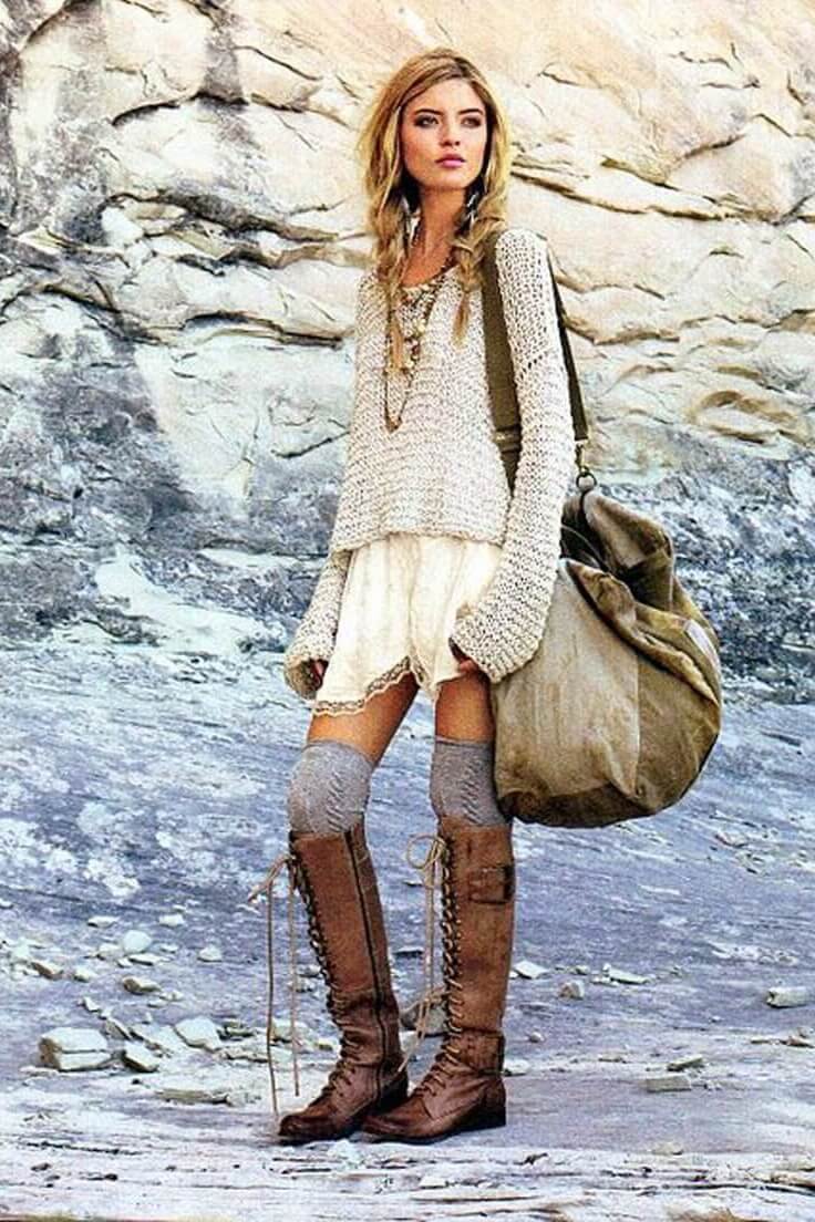 В бохо отлично вписывается декор в стиле кантри: бахрома, соломенные шляпы, потертые казаки. Тут же можно встретить и этнические вещи: рубашки с вышивкой, традиционные жилетки,