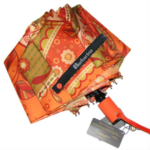 Яркий зонтик полный автомат из новой коллекции Barbarina, насыщенный оранжевый цвет узора на куполе подарит вам солнечное настроение даже в пасмурный день. Полный автомат, ткань купола качественно пропитана водоотталкивающим средством (встряхни и зонт сухой), не выгорает, удобная прорезиненная ручка яркого оранжевого цвета, не скользит в руке. Кнопка открытия-закрытия оформлена в виде элегантной черной планки. Каркас выполнен с использованием фибергласса, это значительно облегчает зонтик и сохраняет при этом надежность и устойчивость к ветру.