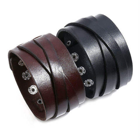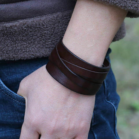 Широкий кожаный браслет в стиле biker