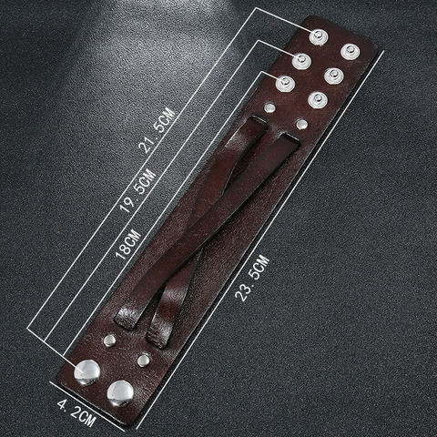 Браслет плотно садится на руку за счет регулируемой застежки. Диапазон обхвата (регулируется) от 18-21,5 см., материал браслета: натуральная кожа с матовой полировкой.