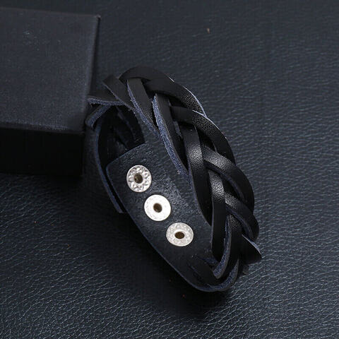 Браслет узкий плетёный из натуральной кожи (арт. К 38675).
