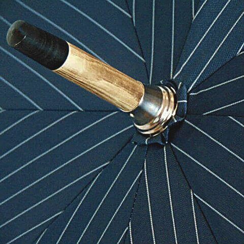 Эта модель относится к категории "big-size"- длина спиц 130 см., диаметр раскрытого купола -110 см. Стальной каркас спрятан внутри деревянного штока.