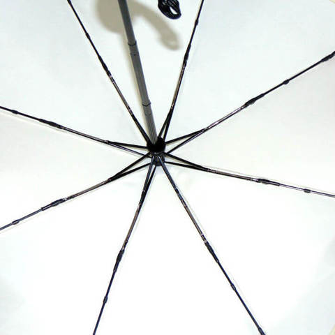 Изящный женский зонтик полный автомат. Молочно-белый купол с золотистыми львицами на контрастном черном крае, мягкая шелковистая ткань, ручная работа. Ткань купола качественно пропитана водоотталкивающим средством (встряхни и зонт сухой), не выгорает. Зонт оснащен системой антиветер, удобная круглая ручка с металлическим оформлением на тыльной стороне.