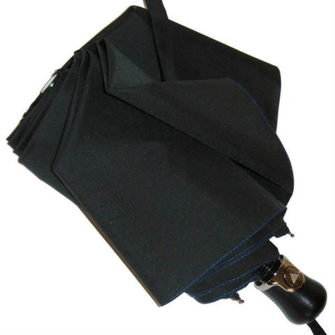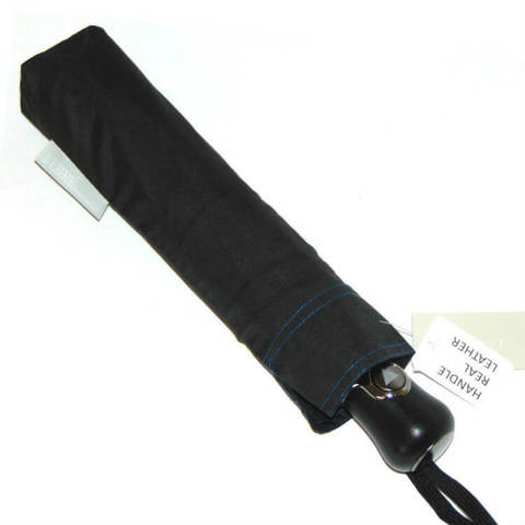 Стильный зонт с эффектной темно-синей строчкой по краю и рукояткой из натуральной кожи.