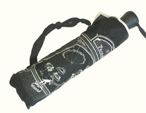 Французский зонтик Boutique производства Guy de Jean (Франция, Донзи). Купол черного цвета (диаметр 110 см.) с фрагментами французской жанровой графики конца IXX- начала XX веков. Тефлоновая пропитка против грязи и воды, не выгорает, 8 карбоновых спиц, крепкий стальной шток (высота-54 см.), длина в сложенном состоянии 29 см, система анти-ветер. Оригинальное изготовление чехла в виде сумочки, всегда удобно положить в нее мокрый зонт.
