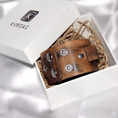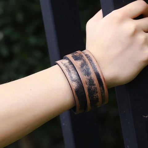 Мужской стильный браслет из натуральной кожи с эффектом потертости.