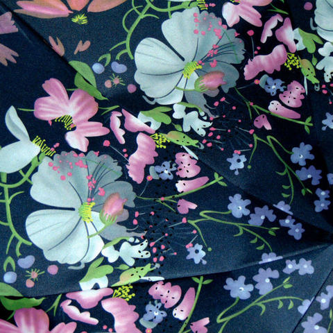 Современный технологичный зонтик обратного сложения. Купол сшит из двух слоев ткани, верхний- однотонный черный а нижний слой с изображением изящного букета и перфорацией для легкого открытия и закрытия. Зонт складывается в обратную сторону и собирает капли дождя внутри себя, никогда вас не намочит в сложенном состоянии. Купол изготовлен из высокопрочного эпонжа (плотность 190 Т) , вода на поверхности собирается в "росу" и легко стряхивается. Особо прочная и легкая конструкция каркаса из металла и стекловолокна. Очень прочный шток из термопластика (жидкий метал PC). Удобная ручка необычной полукруглой формы с матовым покрытием "Soft-touch", помогает освободить руки. Устойчиво стоит на полу без посторонней помощи. Настоящая находка для авто-леди, он легко складывается и не намочит салон.