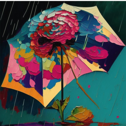 Зонт Пион, дизайнерская ручка как золотой цветок