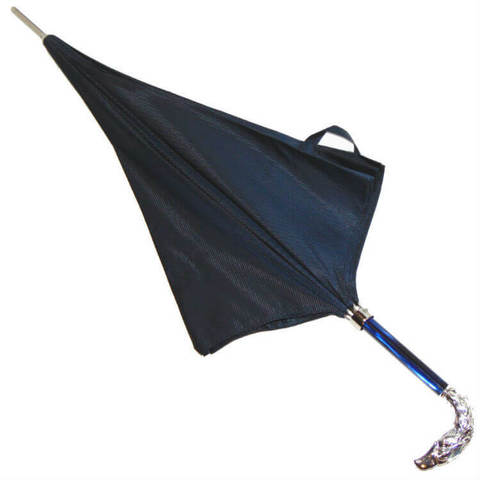 Эксклюзивный зонт ручной работы, купол темно-синего цвета в мелкий рубчик. Необычная дизайнерская ручка с перламутровым отливом, рукоятка в виде головы орла с серебряным гальваническим покрытием.