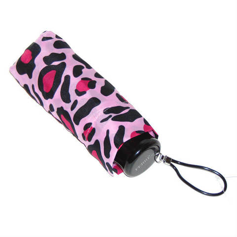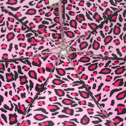 Женский мини зонтик (механика) яркого розового цвета в анималистический рисунок. Длина в сложенном состоянии всего 16 см., вес 218 гр, надежный металлический шток в 5 сложений, 7 спиц (металл+карбон), система анти-ветер, длина спиц 106 см., диаметр под раскрытым куполом 94 см. Тефлоновая пропитка против грязи и воды, зонт легко помещается в дамскую сумочку, он не только защищает от дождя и ветра, но полностью соответствует современным модным тенденциям. Черная круглая ручка, очень компактная, брендирована надписью " Ferre Milano".