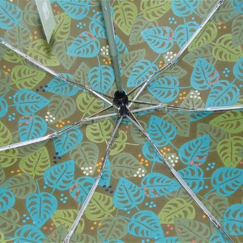 Мини зонтик (механика) в "зеленом" стиле в магазине Зонтофф. Купол выполнен в ярком травяном дизайне с нашивками из леопардового принта.