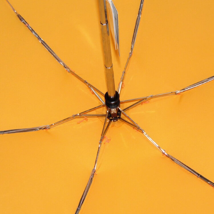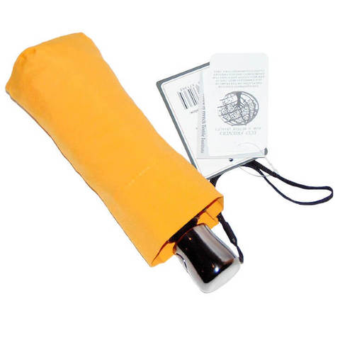 Яркий жёлтый зонтик в магазине Зонтофф, полный автомат. Он может быть использован не только от дождя но и от солнца, т.к. ткань имеет защиту от ультрафиолета "50+", протестирован в French Textile Institute.