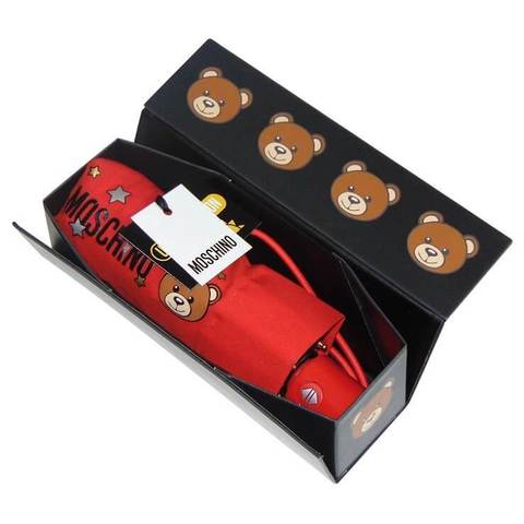 Яркий красный зонтик с мишкой Teddy и блестящими звездами на куполе в магазине Зонтофф, полный автомат.