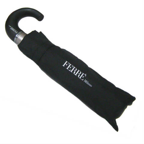 Мужской классический зонтик, полный автомат черного цвета (длина спиц 116 см.). На купол нанесен бренд "FERRE Milano" серебряного цвета. Тефлоновая пропитка, ручка-крюк удобной эргономичной формы с прорезиненным краем и нанесенным брендом FERRE. Комбинированные спицы из стали и карбона, зонт в три сложения (длина 30 см.), система анти-ветер, полный автомат.