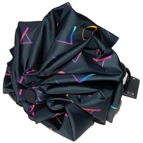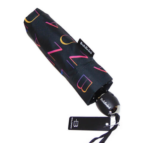 Женский зонтик из новой коллекции Baldinini, полный автомат. Яркие контрастные символы эффектно оттеняют глубокий черный цвет купола.