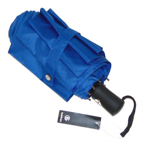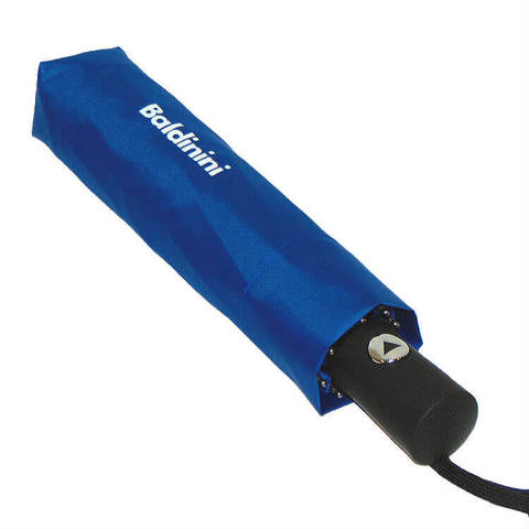 Эффектный синий зонтик в магазине Зонтофф с удобной ручкой, густого насыщенного цвета. Современный дизайн, компактный размер. Эффект "встряхни - и зонт сухой" обеспечивается тефлоновой водоотталкивающей пропиткой на куполе. Упакован в стильный фирменный мешок с брендом "Baldinini".
