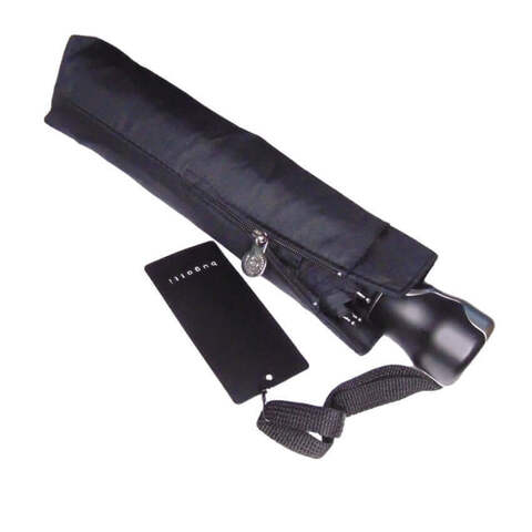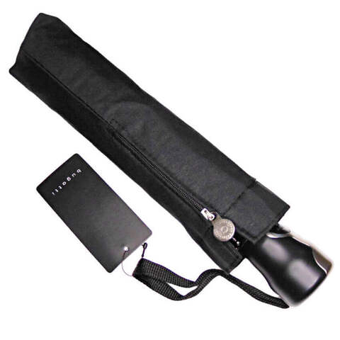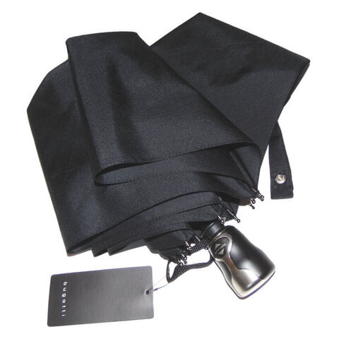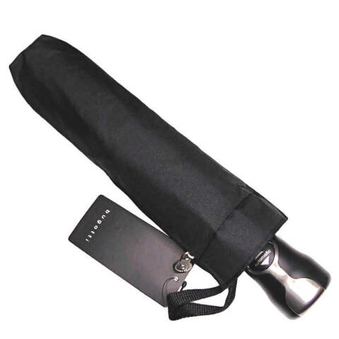 Элегантный черный зонт с металлическими деталями от Bugatti рекомендуется как отличный подарок.