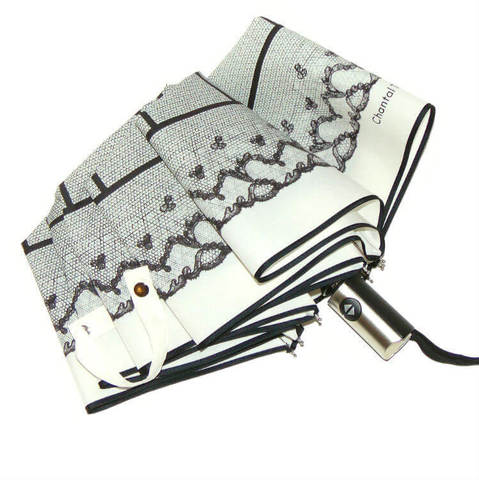Нежный французский зонтик в магазине Зонтофф, полный автомат, с рисунком из черного кружева. Тефлоновая пропитка против грязи и воды, ткань не выгорает, 8 комбинированных спиц ( метал + карбон), крепкий стальной шток , длина спиц 110 см., диаметр купола в раскрытом состоянии 102 см, длина зонта при полном сложении 29 см, система анти-ветер. Оригинальное изготовление чехла в виде сумочки, очень удобно положить в нее мокрый зонтик. Качественная тефлоновая пропитка ткани обеспечивает эффект "встряхни и зонт уже сухой". Модель имеет защиту от ультрафиолета "50+" и протестирована в French Textile Institute.