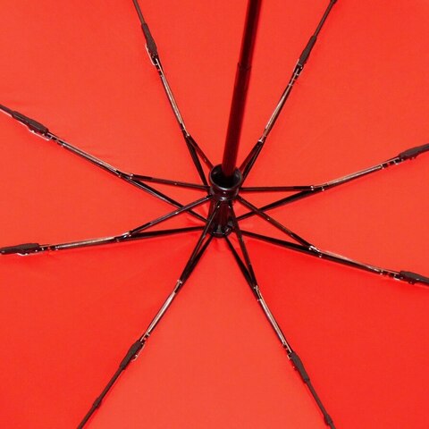 Ткань купола качественно пропитана водоотталкивающим средством (эффект-встряхни и зонт сухой), не выгорает. Зонт оснащен системой антиветер, удобная красная ручка с синим оформлением..