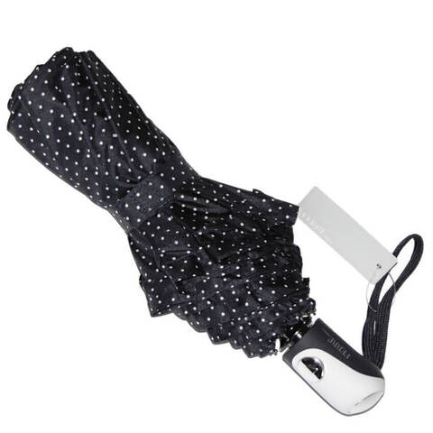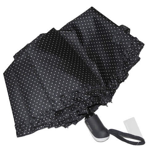 Классический принт в мелкий горошек на черном куполе понравится поклонницам винтажного и романтического стиля. Ткань качественно пропитана водоотталкивающим средством, что обеспечивает быстрое высыхание зонта.