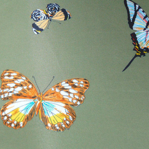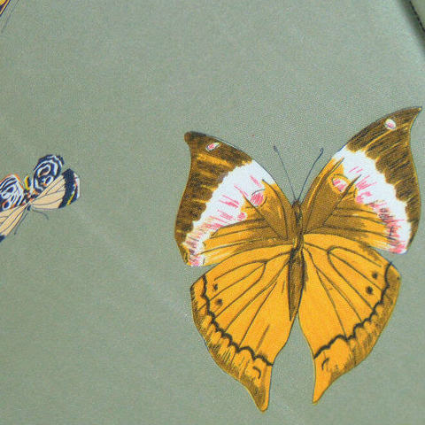 Необычный фисташковый оттенок купола с яркими бабочками. Женский зонтик полный автомат, ручная работа. Ткань купола качественно пропитана водоотталкивающим средством (встряхни и зонт сухой), не выгорает. Зонт оснащен системой антиветер, удобная эргономичная ручка.