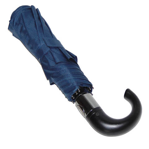 Синий зонтик для мужчин с удобной ручкой в форме крюка. Полный автомат, довольно компактный при сложении. Длина спиц 108 см., диаметр под раскрытым куполом 98 см, глубокий темно-синий цвет.