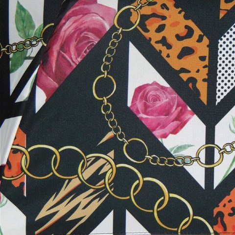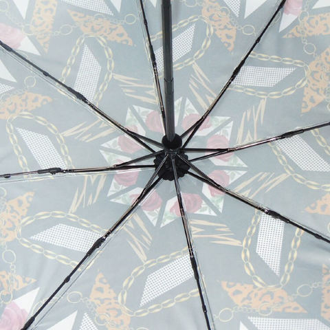 Эффектный женский зонтик полный автомат в магазине Зонтофф, ручная работа. Принт Эклектика искусно объединяет классические женственные идеи -розы, золотые цепи, графический рисунок и экстравагантные решения в виде анималистического принта с леопардовыми полосками, все это на чёрном шелковистом куполе. Ткань качественно пропитана водоотталкивающим средством (встряхни и зонт сухой), не выгорает. Зонт оснащен системой антиветер, удобная круглая ручка с металлическим оформлением на тыльной стороне.