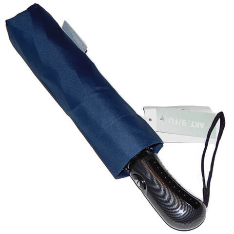 Мужской синий зонтик автомат с большим куполом и стильной ручкой. Полный автомат, длина спиц 125 см., диаметр под раскрытым куполом 114 см. Эргономичная удлиненная ручка с интересным дизайном и металлической планкой с тыльной стороны. Комбинированные спицы из стали и карбона, 8 штук, длина в сложенном состоянии 34 см., модель в три сложения, система анти-ветер.