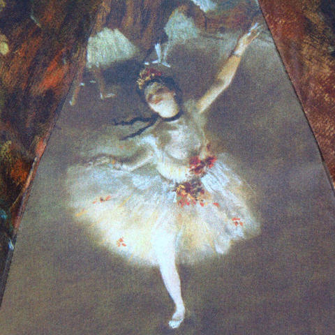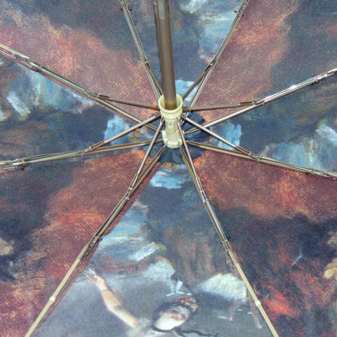 Зонтик (полный автомат) из дизайнерской коллекции"Impressionnisme" Guy de Jean в магазине Зонтофф с фрагментами полотна Эдгара Дега "Танцовщицы". Тефлоновая пропитка против грязи и воды, не выгорает, 8 карбоновых спиц, облегченный алюминиевый шток (высота 54 см.), длина в сложенном состоянии 28 см., длина спиц 112 см, диаметр под раскрытым куполом 100 см., изящная ручка с брендом "Guy de Jean", полный автомат (система safetyclosing) , система анти-ветер.