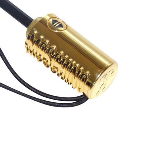 Яркий синий зонтик с золотой ручкой выдает дерзкий характер Moschino.