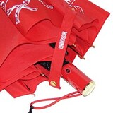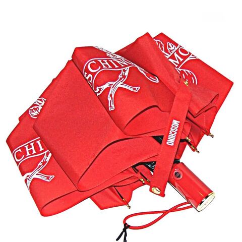 Яркий зонтик (полный автомат) от Moschino в магазине Зонтофф. Насыщенный алый цвет купола с Laurel Logo как символ совершенства от Moschino.