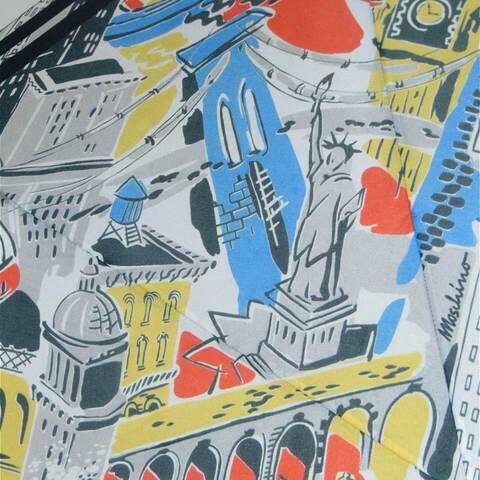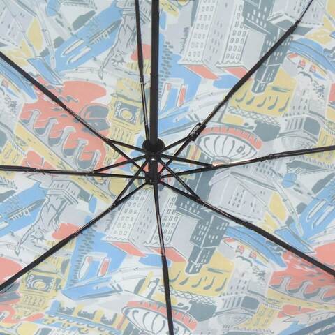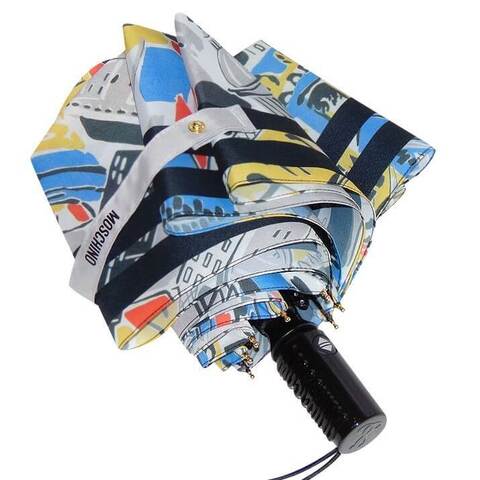 Стильный зонтик с панорамой городов из новой коллекции Moschino в магазине Зонтофф. Зонтик оснащен системой антиветер, у него удобная ручка с выпуклым узнаваемым брендированием.