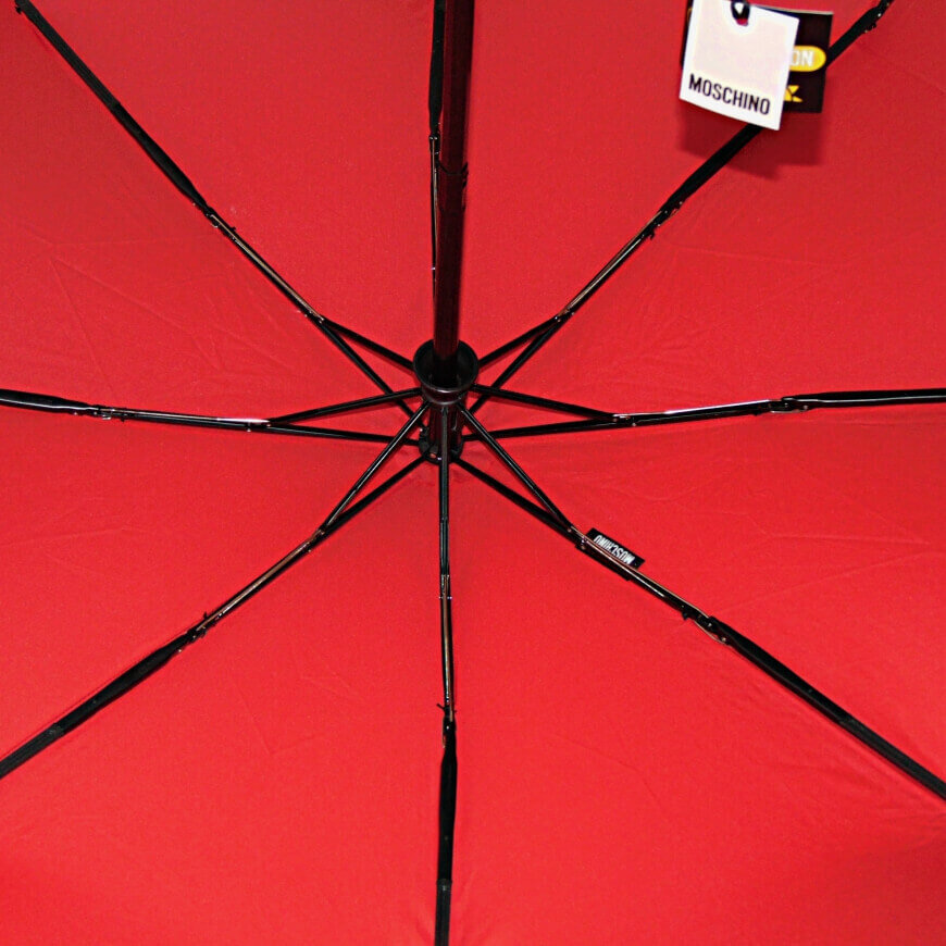 Эффект "встряхни и зонт сухой" прекрасно обеспечивается водоотталкивающей пропиткой. Прочная конструкция зонтика с 8 спицами и системой "антиветер" делает его надежной защитой от дождя и ветра. Эффектная глянцевая ручка с выпуклым логотипом "Moschino" вдоль боковой стороны.