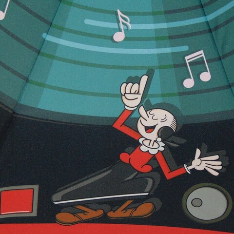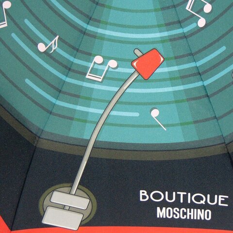Женский зонтик в винтажном стиле в магазине Зонтофф, полный автомат. Новая коллекция "Vinyl Olivia" Moschino Boutique с танцующей озорной Оливией. С таким жизнерадостным принтом отличное настроение вам обеспечено. Зонтик оснащен системой антиветер, у него удобная ручка с металлическим диском на тыльной стороне и гравировкой "BOUTIQUE MOSCHINO".