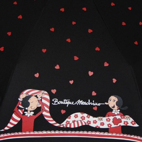 Женский зонтик черного цвета в магазине Зонтофф, полный автомат из коллекции "Оливия"Moschino Boutique с веселыми картинками от озорной Оливии и красными сердечками. С таким зонтом хорошее настроение вам просто обеспечено. Зонтик оснащен системой антиветер, у него удобная ручка с металлическим диском на тыльной стороне и гравировкой "BOUTIQUE MOSCHINO".