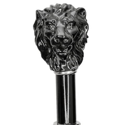 Мужской эффектный зонтик " Чёрный лев" в магазине Зонтофф. Дизайнерская рукоятка выполнена в форме головы льва и покрыта ювелирной черной эмалью, Купол из дорогой ткани в тонкий "рубчик", тефлоновая пропитка, стальные спицы и шток.