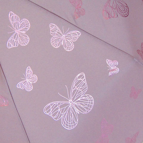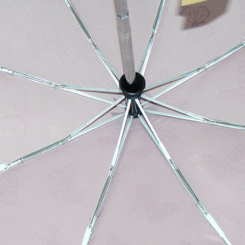 Нежная женственная модель зонтика от Pierre Cardin из новой коллекции, полный автомат. Необычный пепельно-розовый цвет купола с изящными бабочками. Сам рисунок выполнен металлическими красками и выглядит рельефно. Ткань купола качественно пропитана водоотталкивающим средством (встряхни и зонт сухой), не выгорает. Спицы оснащены системой антиветер, для облегчения веса и прочности в изготовлении используется фибергласс, карбон и аллюминий, шток- стальной. Удобная черная ручка с металлической (аллюминий) круглой вставкой на тыльной стороне, брендированной домом моды "Pierre Cardin".