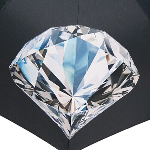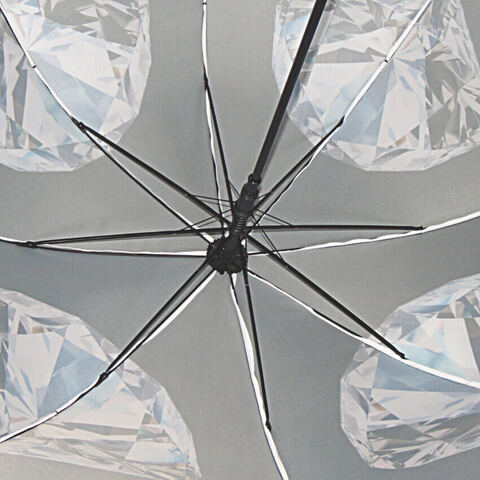 Черный с графитовым оттенком купол с шикарными бриллиантами. Ткань пропитана качественным водоотталкивающим средством, что обеспечивает эффект "встряхни и зонт сухой". Очень комфортная глубокая форма купола: при длине спиц в 120 см. он раскрывается на 102 см.