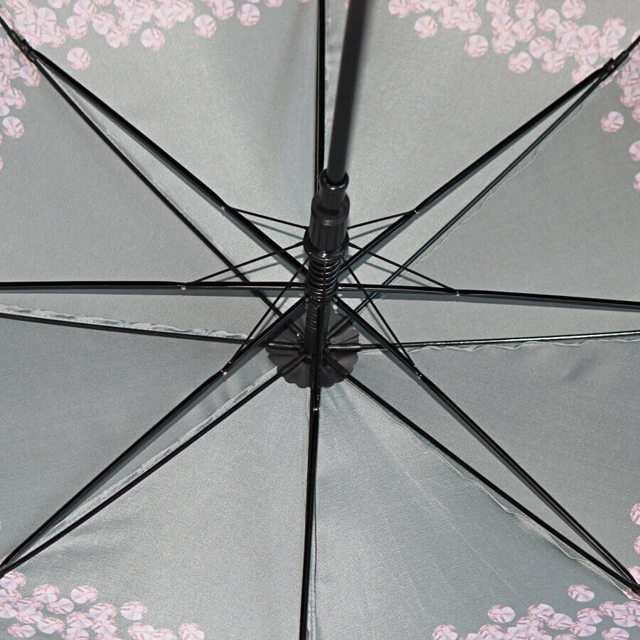 Ткань качественно пропитана водоотталкивающим средством, что обеспечивает эффект "встряхни и зонт сухой". Глубокая форма купола надежно прикроет плечи : при длине спиц в 120 см. он раскрывается на 102 см.