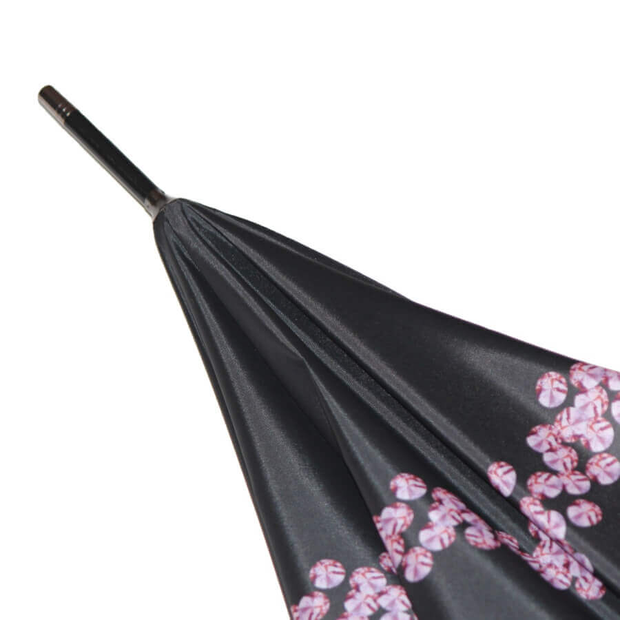 Теплый цвет горького шоколада ( черно-коричневый) эффектно оттеняется полосой нежного розового цвета с россыпью ярких пайеток как лепестков сакуры. Высококачественная печать очень реалистично передает рисунок купола.