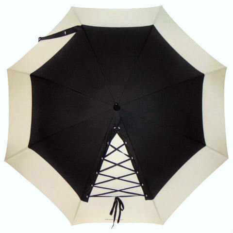 Эффектный женский зонт-трость от Шанталь Тома - "Laçage " Шнуровка - в магазине Зонтофф. Реальная шнуровка для корсета поверх зонта. Ручная работа, купол пошит из двух контрастных тканей. Глубокая форма хорошо закрывает плечи. Шток зонта изготовлен из легкого дерева, внутри него- стальной прочный стержень. Изогнутая ручка-крюк с глянцевым черным покрытием, брендирована фирменной надписью "Chantal Thomass". Модель может использоваться и от солнца, потому что имеет фактор защиты 50+ SPF(ткань протестирована Текстильном Институте Франции). Механическое открытие, тефлоновая пропитка купола против грязи и воды, 8 спиц, система анти-ветер, длина спиц 120 см, диаметр под раскрытым куполом 102 см, длина зонта 91 см.