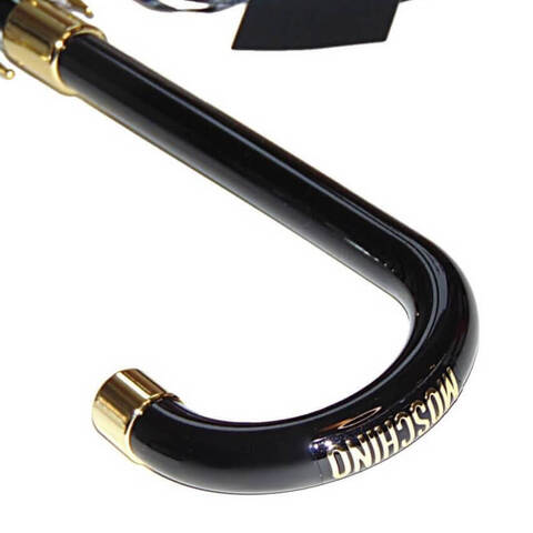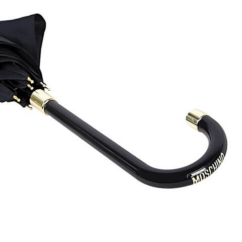 Глубокий купол в форме колокола надежно защитит ваши плечи. Глянцевая черная ручка в форме крюка, на внешнем изгибе которой - золотой бренд "Moschino".