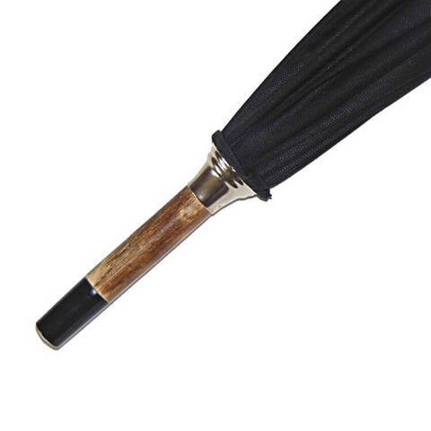 Стальной каркас спрятан внутри деревянного штока. Механика (ручное раскрытие), длина зонта 90 см., длина спиц 130 см. (8 шт.), диаметр под раскрытым куполом -108 см., очень прочный металлический корпус, система антиветер.