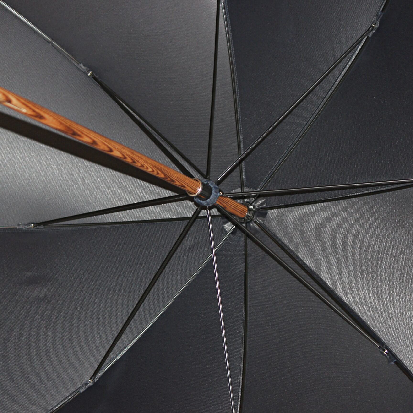 Эта модель относится к категории "big-size"- длина спиц 130 см., диаметр раскрытого купола -110 см. Стальной каркас спрятан внутри деревянного штока.
