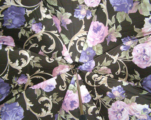 Роскошный женский зонтик ручной работы с двухсторонним куполом. Верхняя ткань золотистого цвета, внутренняя с дизайнерским рисунком из букета садовых роз, фирменное золотое кольцо с гравировкой Pasotti.