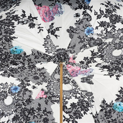 Двухслойный купол, черный атласный верх и роскошный кружевной принт на нижнем слое.