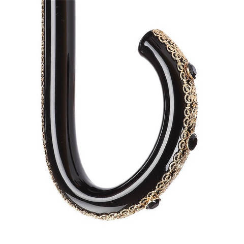 Изящная ручка-крюк с утонченным дизайном -золотая вязь с черными камнями. Золотое кольцо Pasotti.