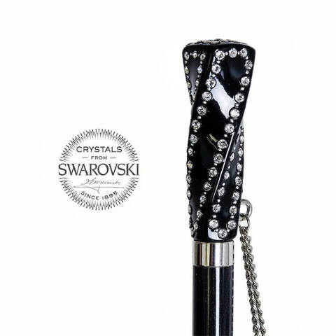 Премиальная коллекция: зонт с кристаллами SWAROVSKI в магазине Зонтофф, ручная работа. Верхний слой купола в однотонном черном цвете, на нижнем яркие цветочные узоры. Изящная дизайнерская ручка с инкрустацией кристаллами Swarovski. Купол фиксируется серебряным кольцом Pasotti.