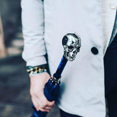Зонт-трость Pasotti Umbrella with Studs and Silver Skull, Италия (арт.416NT PBT W33PB).