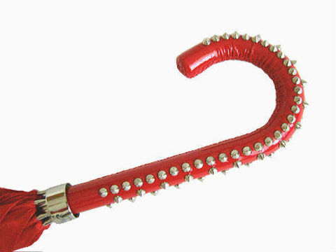 Роскошный женский зонт-трость Pasotti, ручная работа, кожаная красная ручка в форме"крюк" с шипами.
